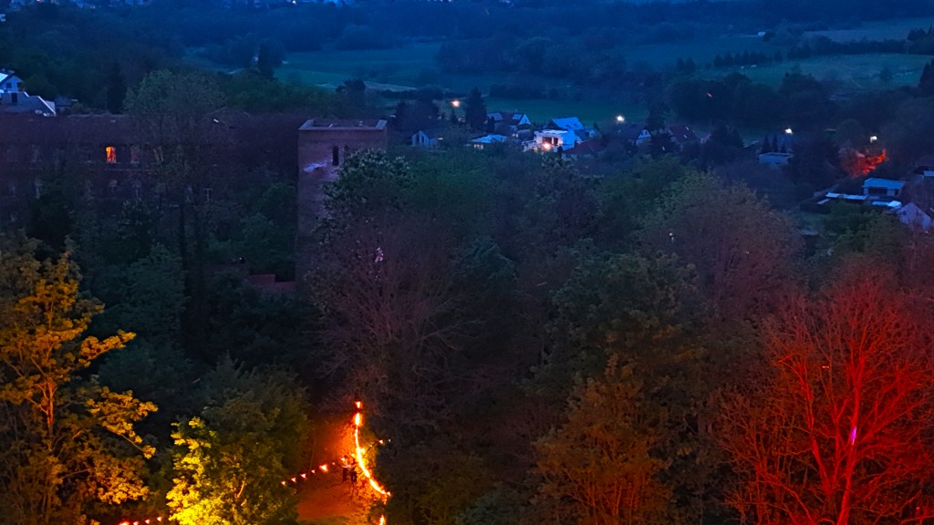 In diesem Jahr beleuchteten wir das Burgberggelände zur Walpurgisnacht aus. Dazu haben wir auf Wunsch des Eilenburger Burgvereins auch spektakuläre Drohnenaufnahmen gemacht.