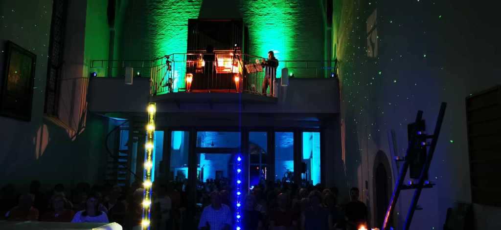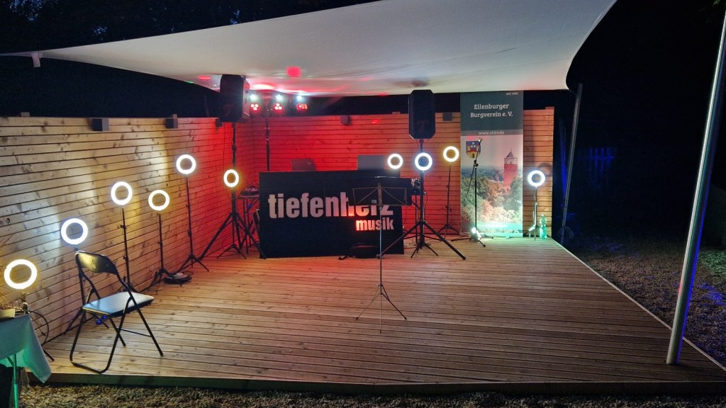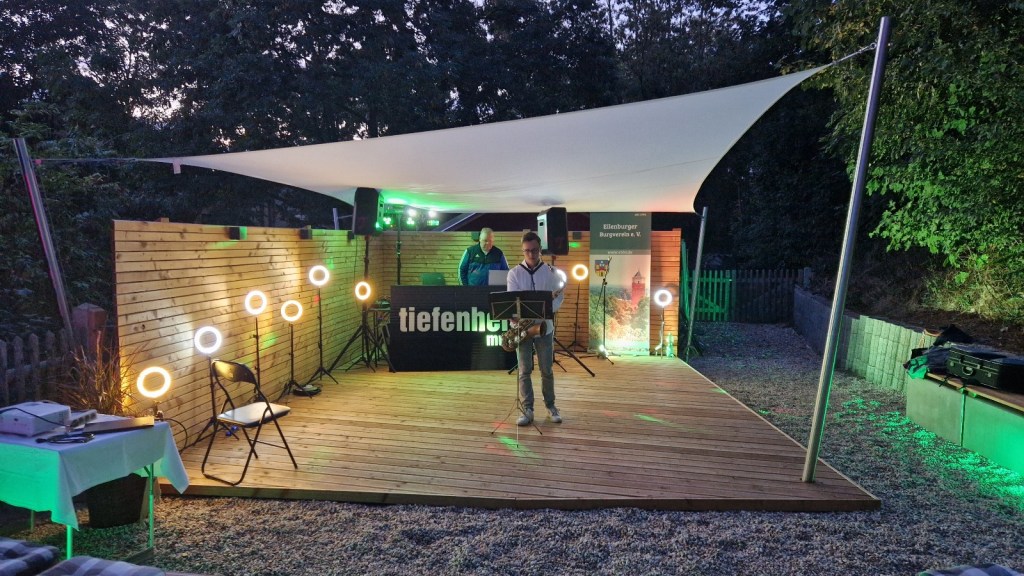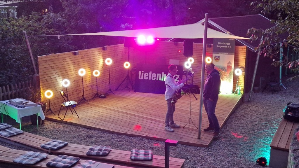 Der Burgverein Eilenburg, mit seinem Domizil im Torhaus auf dem Burgberg, hat seine Kulturbühne eröffnet. Viele Besucher, Sponsoeren, Helfer und Neugierige kamen zur Eröffnung. Wir durften die Eröffnung musikalisch und mit viel Licht untermalen.