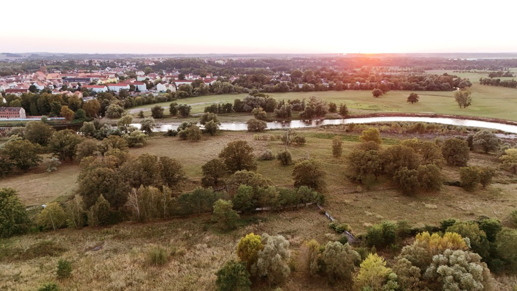 Schöne Drohnenaufnahmen aus der Muldenaue Eilenburg. Ein toller Spätsommerabend im September.