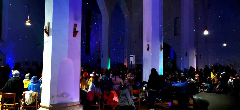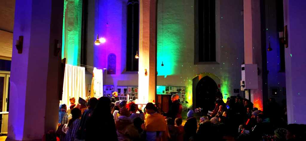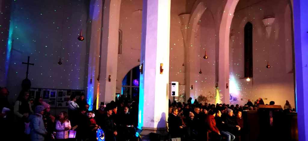 Wir tauchten zum Martinsfest die rappelvolle Nikolaikirche in ein Meer aus Farben und Sternen.