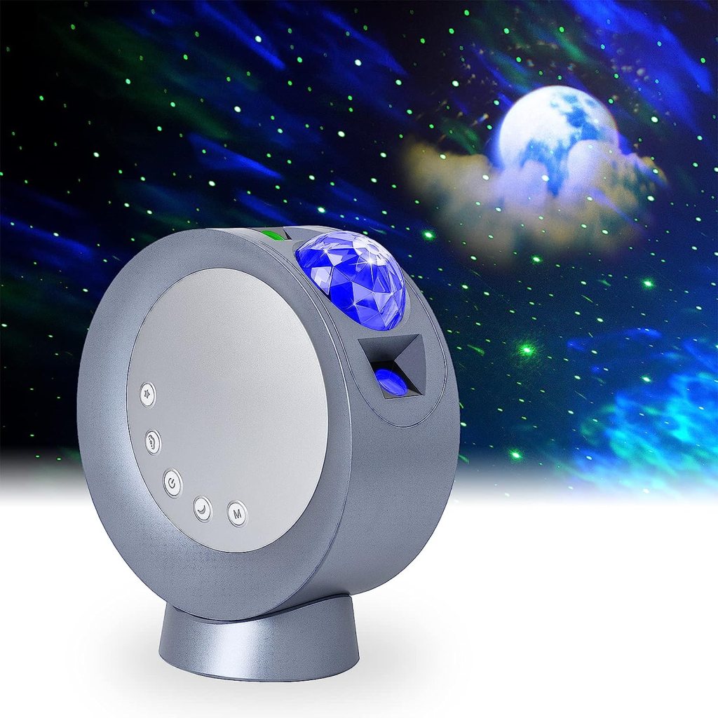 Der LED-Stern-Nachtlichtprojektor projiziert erstaunliche Nebel, Sterne und einen Vollmond an eine Wand oder Decke. Diese Funktionen können gemeinsam oder unabhängig voneinander bearbeitet werden. Der Akku hält circa 2 Stunden und wird mit Fernbedienungen gesteuert.