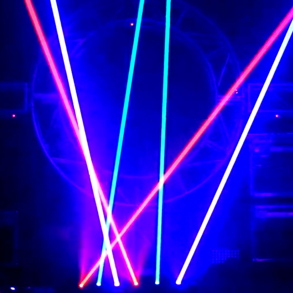 Die 2 Laser Wallbars sind mit 6x 500MW Voll-RGB Laserstrahlen ausgestattet. Die Laser sind mit einem beweglichen Bereich von 190 Grad ausgestattet. Diese werden über einen DMX Controller gesteuert. Ein absolutes Highlight für jedes Event.