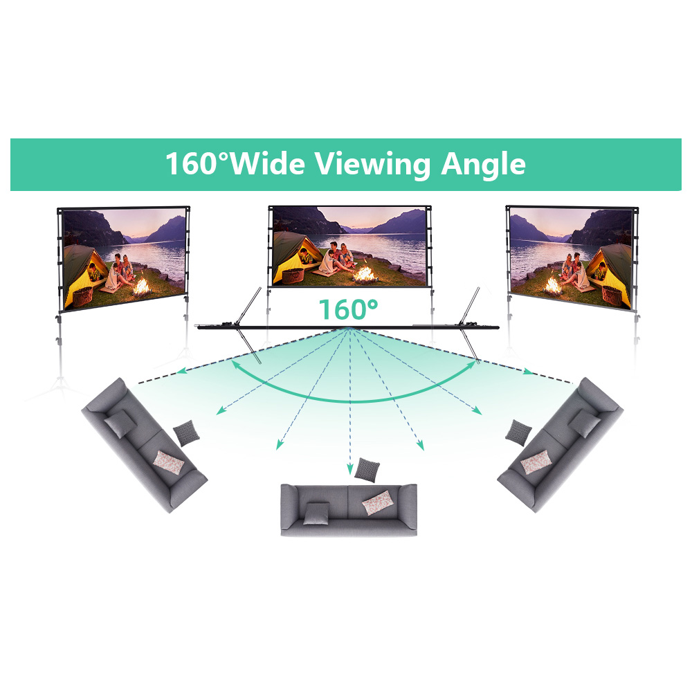 Die GAINVANE-Projektionsleinwand ist sehr einfach zu montieren. 5 Minuten zum Einrichten mit zwei Personen. Perfekt für den Einsatz im Innen- und Außenbereich.