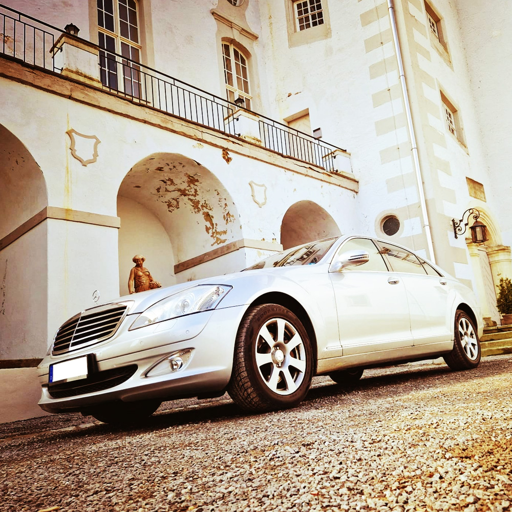 Wir bieten euch mit der S-Klasse W221 Langversion eine wunderschöne Limousine. Jeder Sitz ist beheizt, belüftet, in verschiedene Richtungen einstellbar. Im hinteren Bereich ist ein sehr großes Platzangebot mit einem Beinbereich von knapp 60 cm vom Sitz bis zum Fahrersitz. Also genug Platz für jedes Hochzeitskleid. Der Fahrer fährt euch förmlich schwebend mit einem Luftfahrwerk von daheim zu eurer Trauung, wartet dann während der Trauung und chauffiert euch weiter zu eurer Hochzeitslocation.